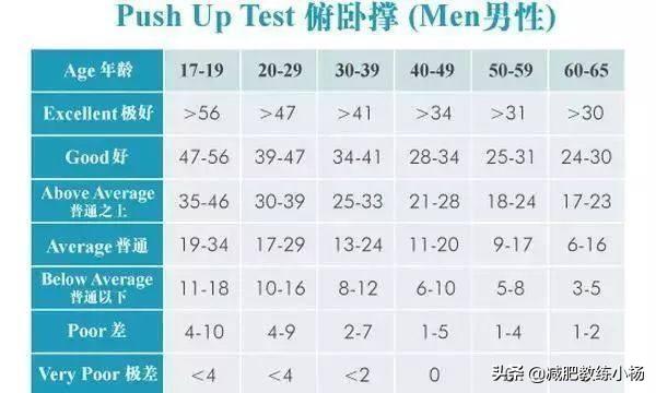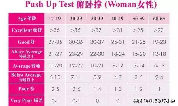 下面我们通过二张表来了解一下自己的俯卧撑有没有及格吧