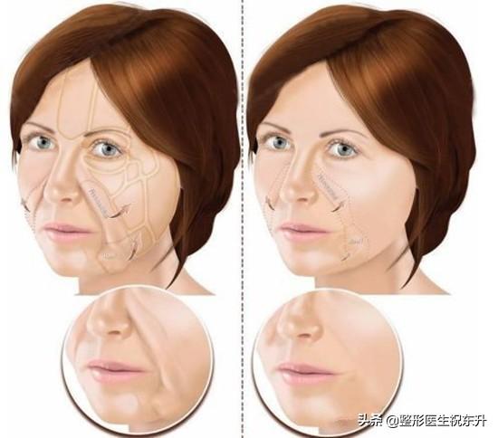 3、软组织缺失,面部下垂:面部松垂不严重的可以考虑“线雕提升+玻尿酸/脂肪填充”,严重者可以考虑“拉皮手术+玻尿酸/脂肪填充”。