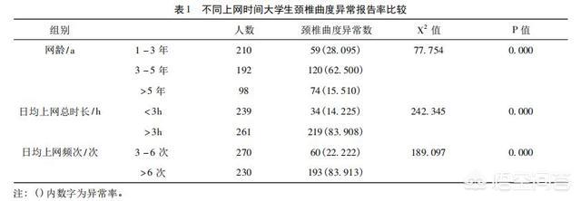 2018年有研究【1】搜集了2000例在校大学生颈部疼痛的患者,其每天连续低头使用电子产品的时间,并在临床上拍摄颈椎X线片,对颈椎曲度进行测量,运用统计学工具对受试者的网龄、每日平均上网时长、每日上网频次与颈椎曲度的相关性进行分析。