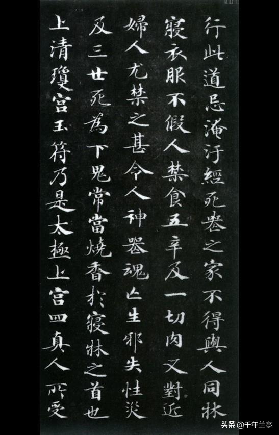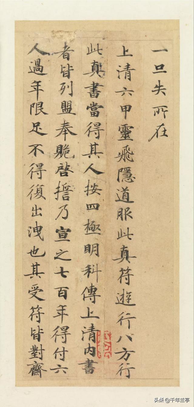 《灵飞经》虽用写经体书写,但其中写经体常见的习气较少,如将之与《兰亭序》及智永《千字文》比较,你会发现,其用笔、结构相似之处颇多,体势也接近褚遂良一路。