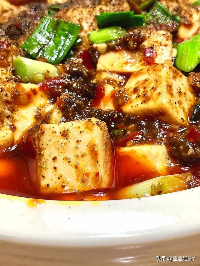 做法:1、锅里放适量清水,加少许盐,豆腐切小块放入稍煮捞起备用。2、另起油锅,加入牛肉末炒香,加入姜蒜末,郫县豆瓣酱,辣椒粉,花椒粒炒出红油。3、倒入焯水豆腐,翻匀,加小半碗高汤或清水稍煮入味,用水淀粉分两三次收汁,加鸡粉调味,加入蒜苗段翻匀起锅装盘,撒花椒粉。