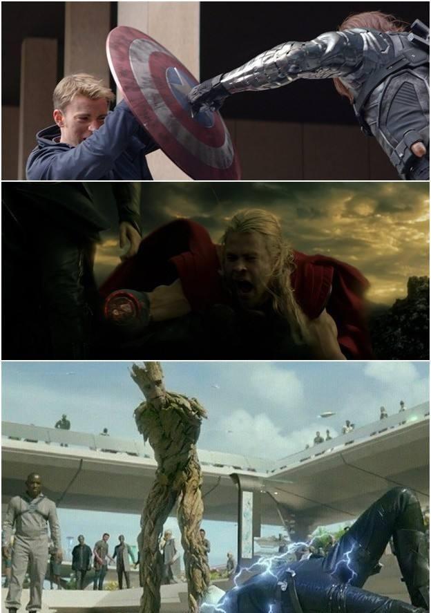 6.“Hail hydra”要把这点单独列出来,实在是太喜欢这句台词了,以为会复刻一下美队2中经典的电梯之战“Before we get started,does anyone want to get out?”,因为当时的场景包括演员真的和美队2一模一样,可能多了那个光头演员( Agent Sitwell )(那个光头探员也堪称客串王了,在很多漫威电影(包括特别短片)都有客串)没想到美队一句“Hail hydra”,轻松解决,还完美还愿了漫画剧情,16年这个事情还被争论了好长时间。我们那一场听到这句话全场鼓掌。同样的一次鼓掌还发生在,美队拿起了雷神锤子的时候,其实当雷神双持武器就已经猜到了雷神锤可能会被美队拿起,在《复联2》开头中,几个复仇者看谁能拿起锤子,只有美队使锤子轻轻动了一下,当时雷神的脸色刷的一下就变了。
