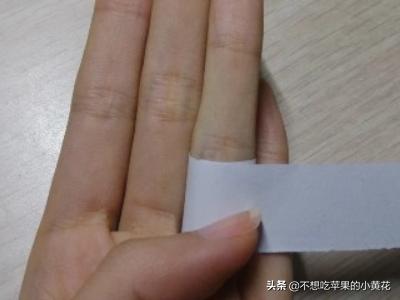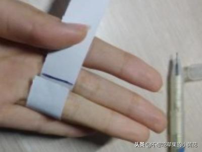 1、首先,咱们使用宽纸条轻轻的绕要戴戒指的手指根部一圈;