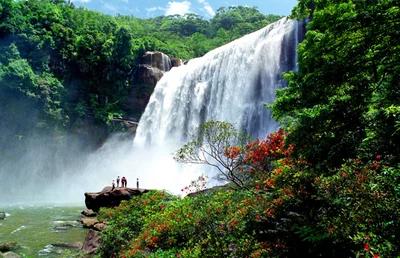 赤水大瀑布景区(又名十丈洞景区)位于贵州省赤水市南部,赤水河支流风溪河上游,离赤水城区三十余公里,是国家AAAA级景区,赤水国家级风景区名胜区的重点组成部分。 赤水大瀑布景区是“赤水丹霞”申报世界自然遗产的核心组成部分之一, 十丈洞大瀑布堪与黄果树大瀑布媲美,瀑高76米,宽80米,比黄果树瀑布高8米、仅窄1米,是我我国最佳瀑布奇观之一,瀑布水从悬崖绝壁上倾泻而下,似万马奔腾,气势磅礴,数百米内水雾迷蒙。偶尔还能看到奇妙的“佛光环”,水动环移,令人称奇。瀑布周围树木繁茂、四季葱郁,有成片的杜鹃林、桫椤林等景观。至瀑布途中,有引上游瀑布水发电形成的“两会水瀑布”,以及断崖形成的“中洞瀑布”。