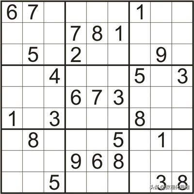 数独是一种运用纸和笔进行演算推理的逻辑游戏。数独盘由九个宫组成,每个宫又分成九个小格,每个小格可以填写数字1~9,每一行,每一列以及每个宫均含数字1~9,且每个数字只能出现一次,不能重复,见下图。