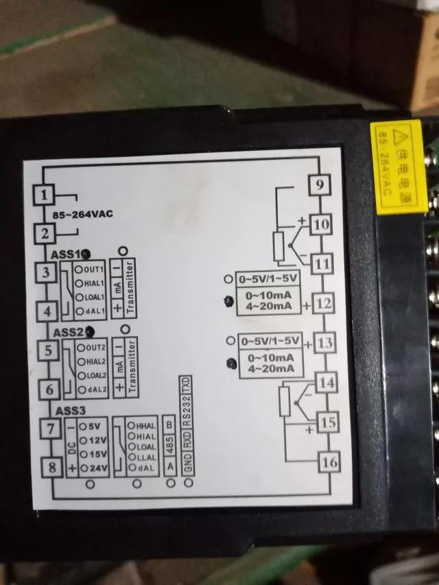 看了一下你的温控器的电源输入端为①②端,它的输入电压为很宽的范围,交流85V至264V都可以。它有2路常开触点输出,就是ASS1→③④端或者是ASS2输出的⑤⑥端,两组只能够谁便用一组即可。温控器可以接多种型号的感温头,如果接热电阻的PT100或者Cu50热电阻,那么需要接9、10、11端子,或者是14、15、16端子上,接其他热电偶就只能接正负极的端子,因为热电偶是分为正负极的。另外端子不过它。
