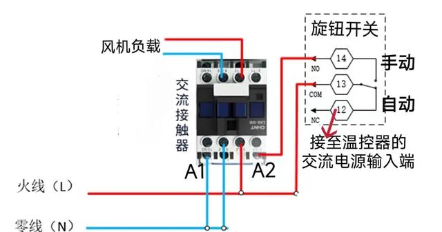 风机温控器(用温控仪控制风机启停,手动自动并用怎么接线)