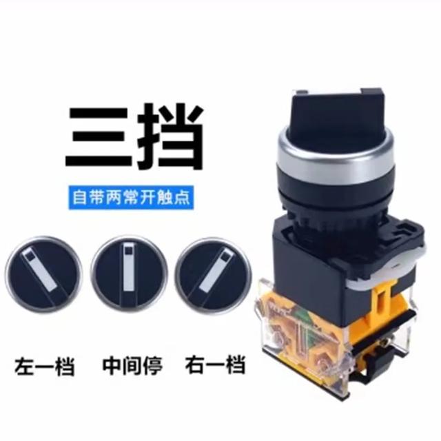 如果想要做到手动/自动切换控制,仅仅只是需要购买一只LA38的三档自锁旋钮开关,就可以达到手动/自动控制的目的。这种旋钮开关左边是一个档,中间是空档,右边又是一个档位。见下图所示