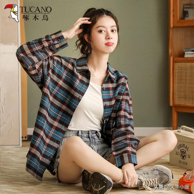 (三)宽松格子衬衫。这种衬衫如果想成职业装,那就束进去,下身配牛仔裤。如果休闲当外套,里配T恤牛仔裤或牛仔裙或牛仔短裤,阳光时尚魅力十足。