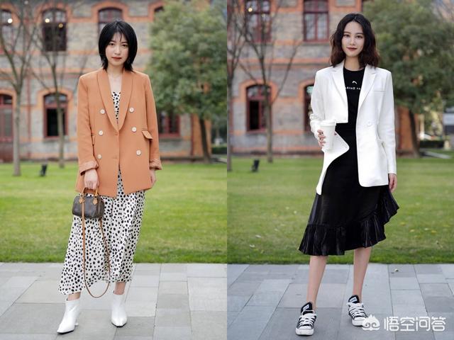 浅色西装也很不错,搭配裙子简直就是春日最佳。