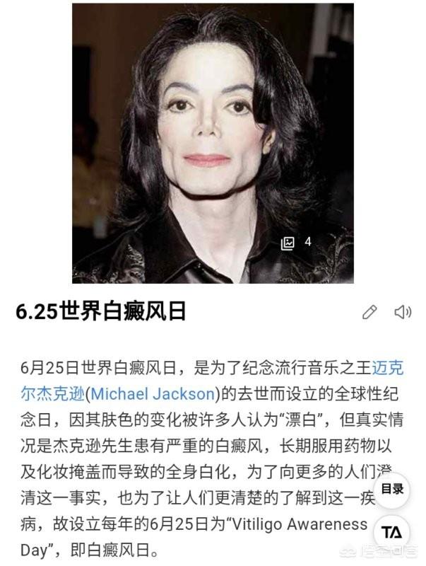 迈克尔杰克逊患有严重的白癜风和红斑狼疮,白癜风,遗传,压力过大都有可能导致……和白化病完全不是一种病。白癜风导致的斑驳皮肤靠化妆遮盖。大儿子也遗传了白癜风。