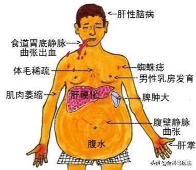 6、晚期的肝病患者会出现蜘蛛痣、肝掌、牙龈出血、皮下出血、肝病面容、腹水、静脉曲张等症状。