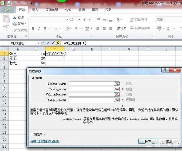 第二步:在表2第三列输入函数。=VLOOKUP 跳转出函数参数选框,如图: