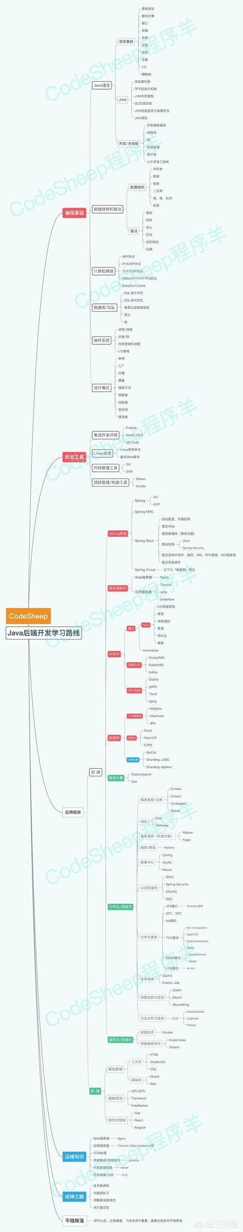 这是我前两天整理的「Java后端开发学习路线图」,基本把Java后端开发领域主流技术都归纳起来了: