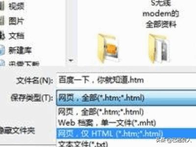2.在弹出保存菜单中选择保存类型为“网页,仅html”选项,点击保存。如图所示