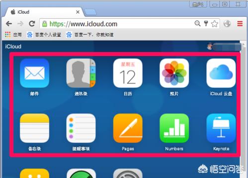 3、进入到苹果icloud里面,我们可以从iCloud列表栏目选项页面,根据个人需要在iCloud上面使用这些功能,例如:对手机查找定位,或者查看备份照片、通讯录、邮件等等都可以在这上面进行操作。