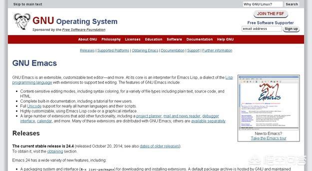 GNU Emacs 是可扩展,自定义的文本编辑器,甚至是更多的功能。Emacs 的核心是 Emacs Lisp 解析器,但是支持文本编辑。如果你已经使用过 Vim,可以尝试一下 Emacs。