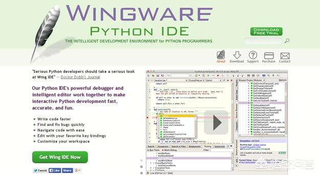 Wingware 的 Python IDE 兼容 Python 2.x 和 3.x,可以结合 Django, matplotlib, Zope, Plone, App Engine, PyQt, PySide, wxPython, PyGTK, Tkinter, mod_wsgi, pygame, Maya, MotionBuilder, NUKE, Blender 和其他 Python 框架使用。Wing 支持测试驱动开发,集成了单元测试,nose 和 Django 框架的执行和调试功能。Wing IDE 启动和运行的速度都非常快,支持 Windows, Linux, OS X 和 Python versi。