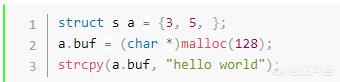 这样看来,就本例而言,b = a;显然是一次“深拷贝”,因为 a, b 在内存中彼此独立,并且拷贝后,b 的内容和 a 的内容完全相同。那C语言的结构体赋值拷贝一定是“深拷贝”吗?我们将结构体 s 新增一个指针成员 buf: