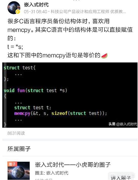 这个问题和我之前发的文章有些相似,上周我在我的C语言学习圈子里简要介绍了一个小窍门,粗略来说就是使用C语言结构体的赋值语法,代替memcpy()语句,以精简代码,大致如下图所示: