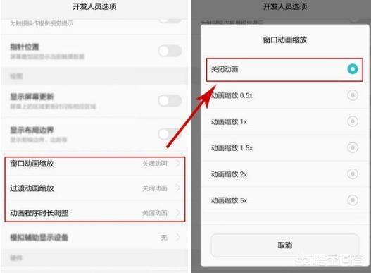 过渡动画缩放 如果你对自己的操作系统的流畅程度感觉不满意的话,尝试调整一下自己手机的动画缩放倍数(变为0.75倍甚至0.5倍),这样可能会有一些改观,同时还会降低系统占用。