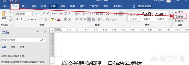 然后我们将工具栏切换到开始选项卡,选择替换。
