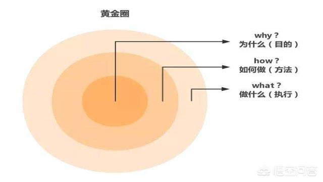 黄金圈法则,是一个思考问题的逻辑:一般的大众思维,都是从做什么开始,然后如何做,最后才问为什么,从外向内思考;而黄金圈法则思维模式则是先直指问题核心,从为什么开始,然后是如何做,最后才是做什么,这是内向思考。