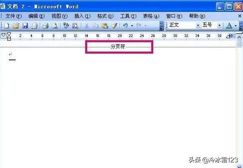 6、点击普通以后,页面会显示普通的格式看到分页符,点击选中分页符,然后按键盘上的Delete键将分页符删除。