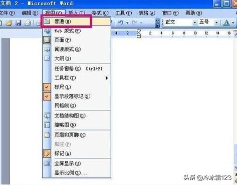 5、点击视图以后,再下拉菜单上面点击普通。