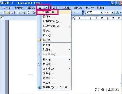 1、首先就是再添加页面的时候要再尾页点击插入,然后在下拉菜单上面点击分隔符。