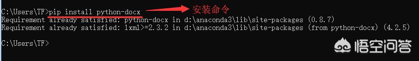 1.安装python-docx,这个直接在cmd窗口输入命令“pip install python-docx”就行,如下: