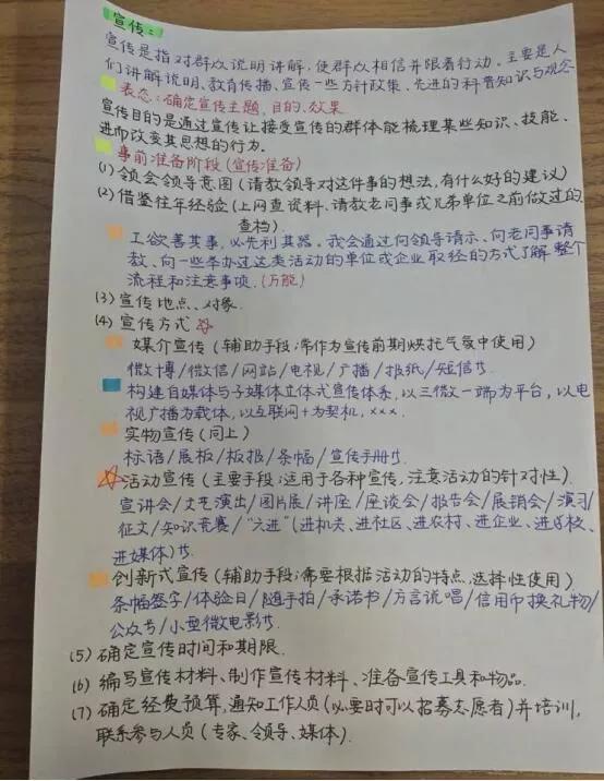 还有就是答案,一是要尽量的细化,比如向居民宣传或者解释某项事宜,不要单纯的说线上线下,可以说三微一端、本地公众号、本地论坛、居委会交流群、电梯宣传栏等等这些具体的方法,尽可能的带入到生活实际上。