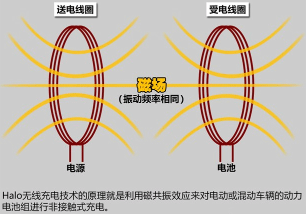 这是目前正在研究的一种无线充电方案,但是至今无法实现商用,这种是在其两端的谐振器产生磁场共振,来进行电力传输,简单来说就是在一个频率上震动,他们就能彼此交换能量,这个的优点是传输距离远,但是效率低,这也是为什么无法推广的的原因之一。