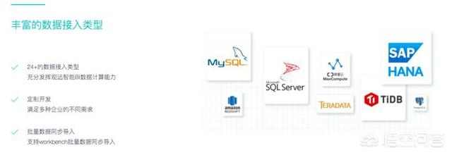 观远智能BI可无缝对接到企业各类信息化系统中,可对接几十种数据源,实现数据互通胡融,同时也支持在线填报或Excel导入等功能。