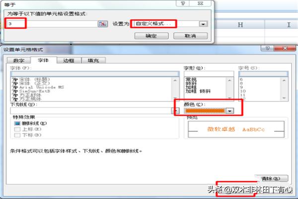 8.在打开的“设置单元格格式”窗口中,输入数值及“自定义格式”,即可自动填充满足条件的单元格颜色。
