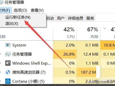 5、在打开的任务管理器窗口中,依次点击文件/新建运行任务菜单项